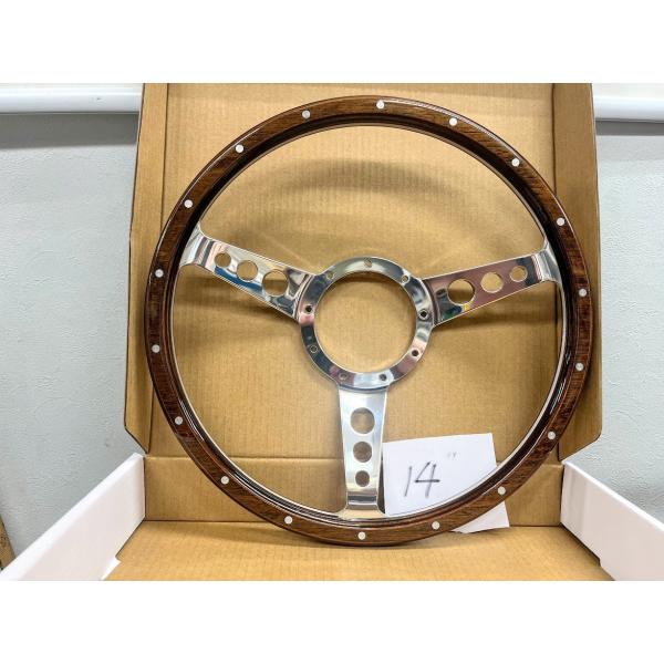 カスタム アルミ ビレット クラッシックウッド 丸穴 2D ステアリング ハンドル 9穴 約35φ 14インチ バドニック モトリタ レカラ