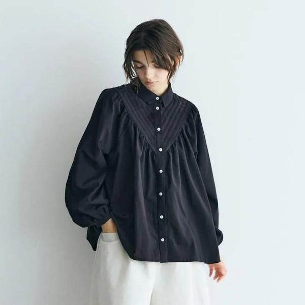 MAGALI | ブリージー・コットンシルク・レースヨークブラウス (ブラック) | マガリ トップス ブラウス