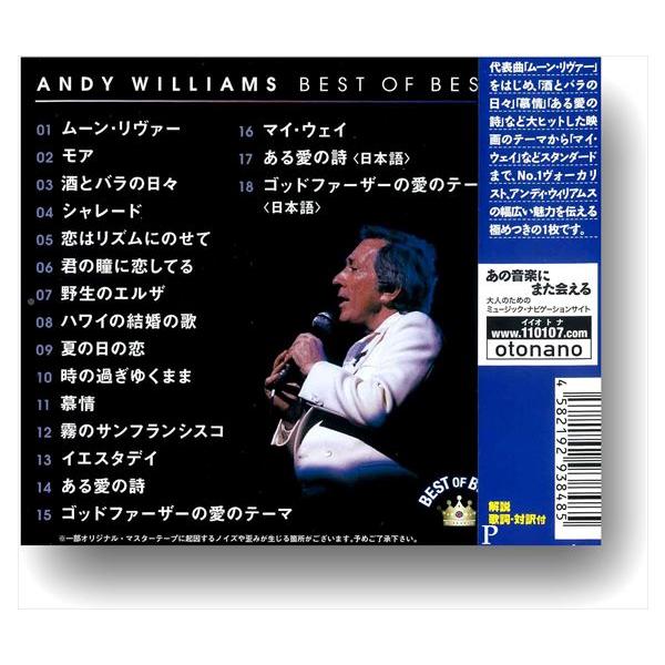 代表曲「ムーン・リヴァー」をハジメ、「酒とバラの日々」「慕情」など大ヒットした映画のテーマから「マイ・ウェイ」などスタンダードまで、No.1ヴォーカリスト、アンディ・ウィリアムスの幅広い魅力を伝える極めつきの1枚です。
